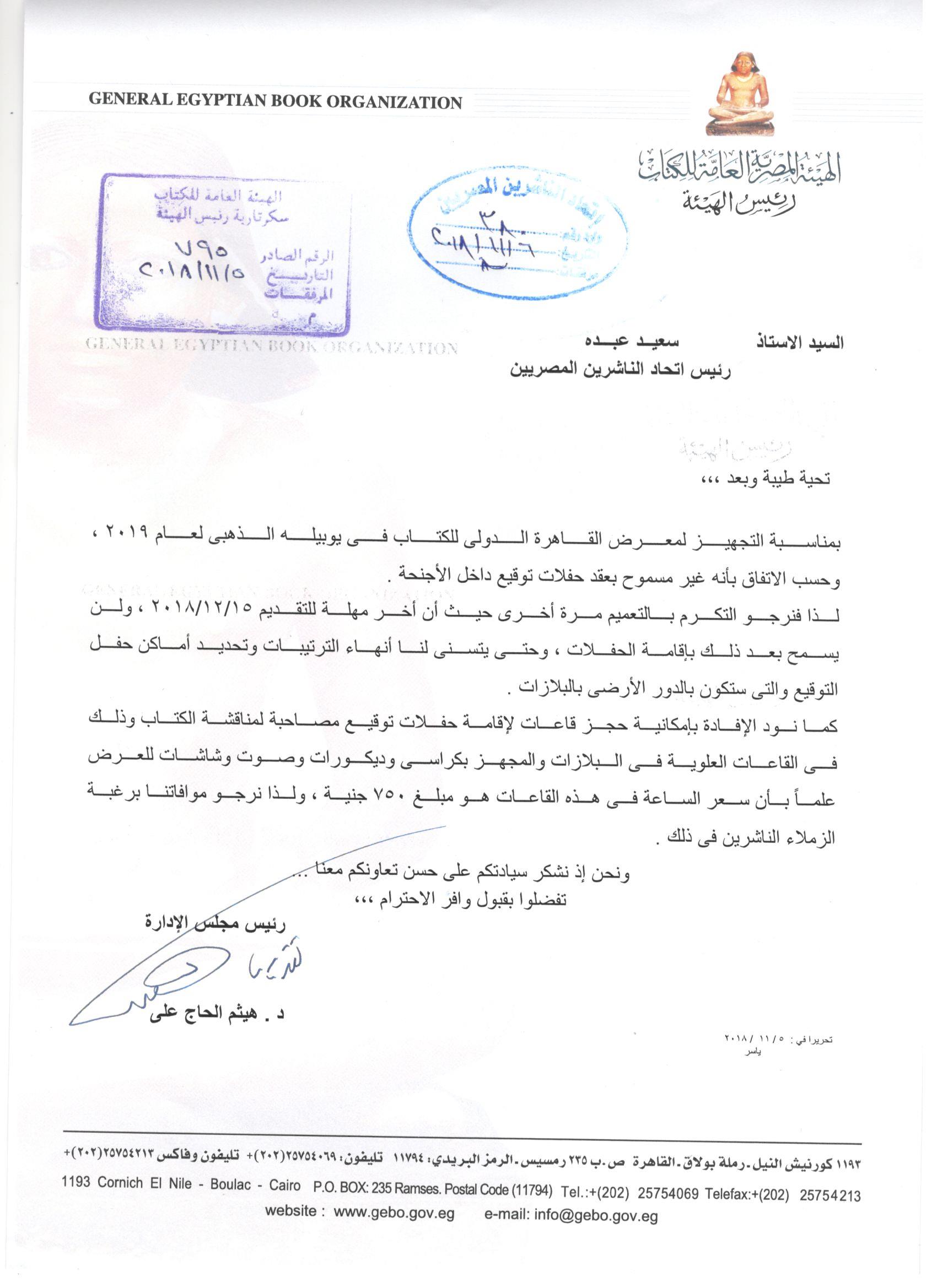 بخصوص حفلات التوقيع خلال معرض القاهرة الدولى للكتاب 2019