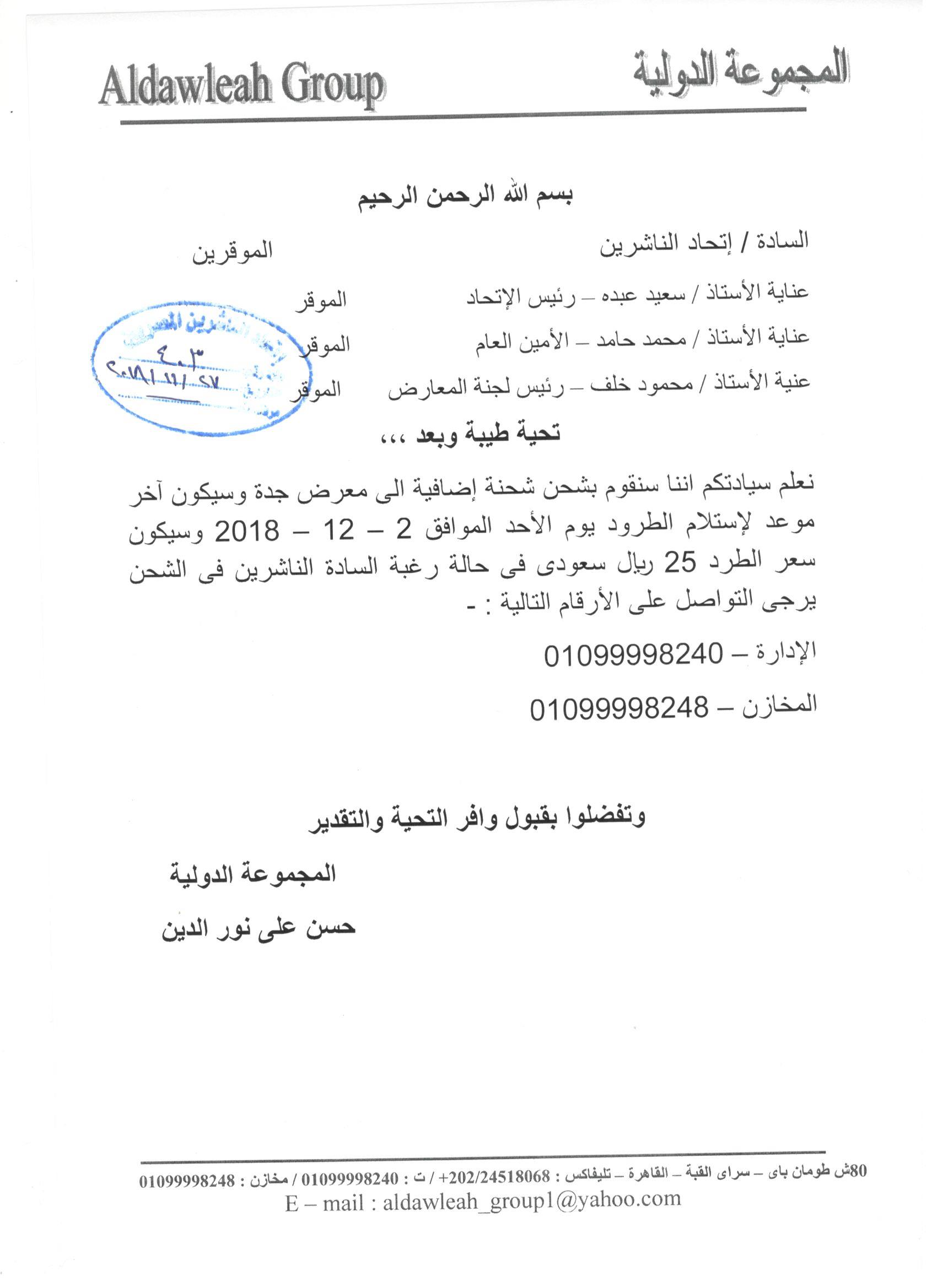 بخصوص الإعداد والتجهيز لشحنة إضافية لمعرض جدة الدولى للكتاب