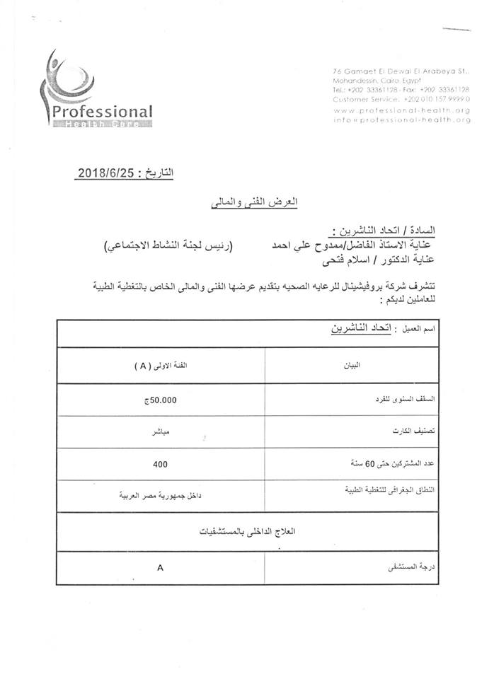 بخصوص عرض التامين الصحى الخاص بالناشرين المصريين