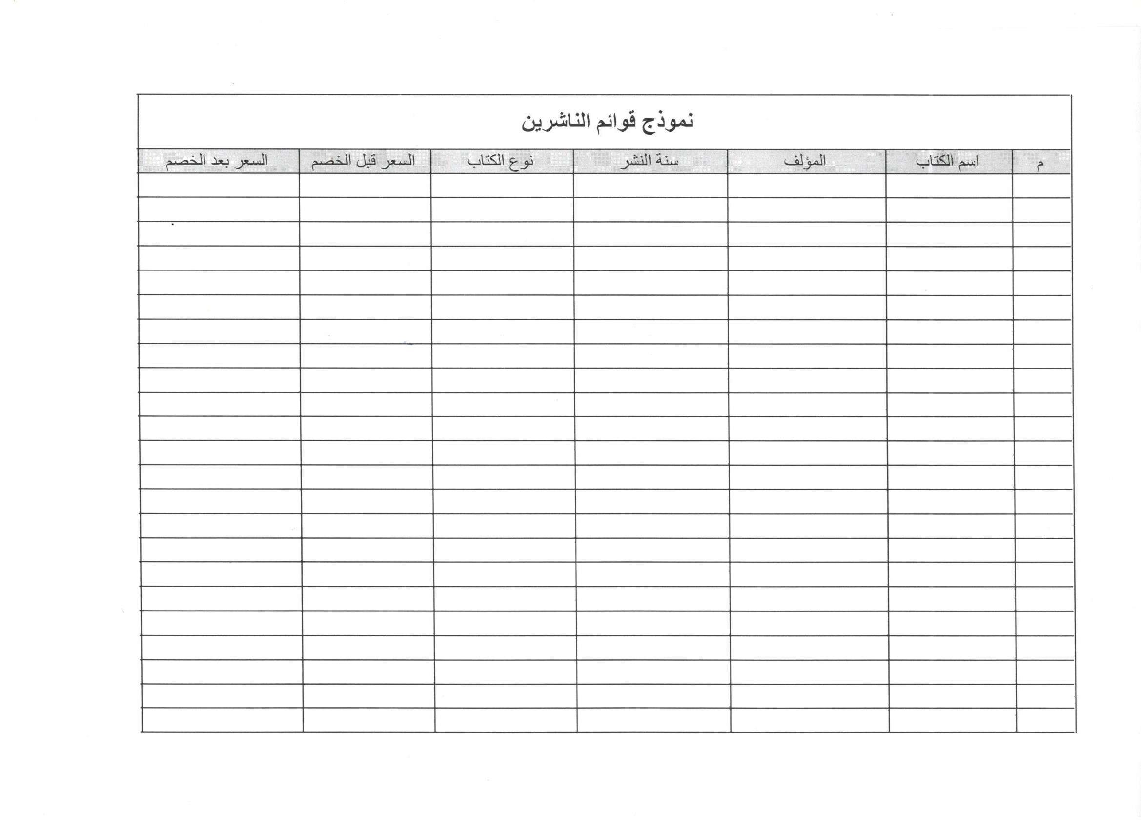 نتشرف بالإحاطة بأنه ورد إلينا عدد 160 قائمة حتى تاريخه، فعلى السادة الناشرين الذين لم يرسلوا القوائم الخاصة بهم سرعة إرسالها حتى نحقق الاستفادة لأكبر عدد من الناشرين المصريين.