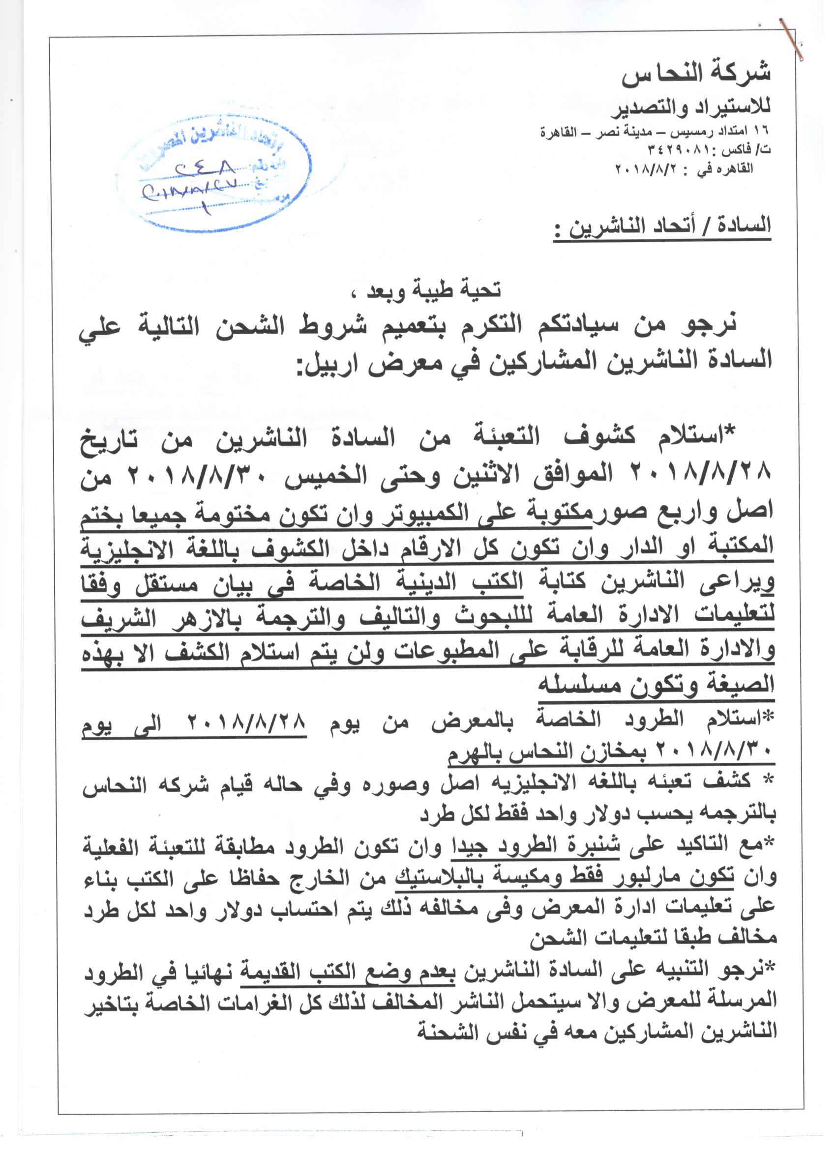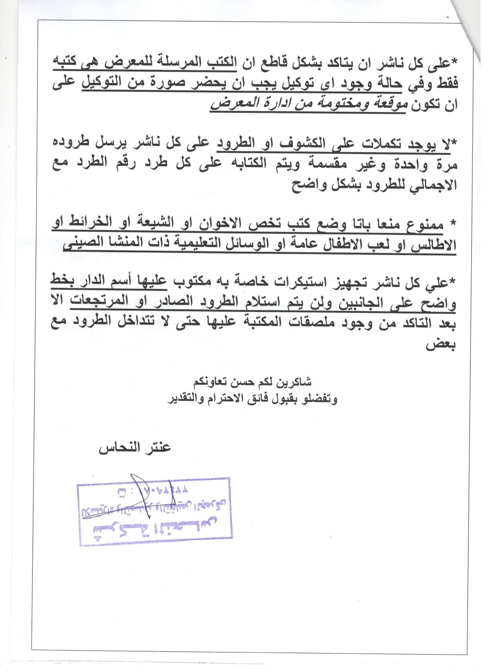 تعليمات شحن معرض أربيل الدولى للكتاب