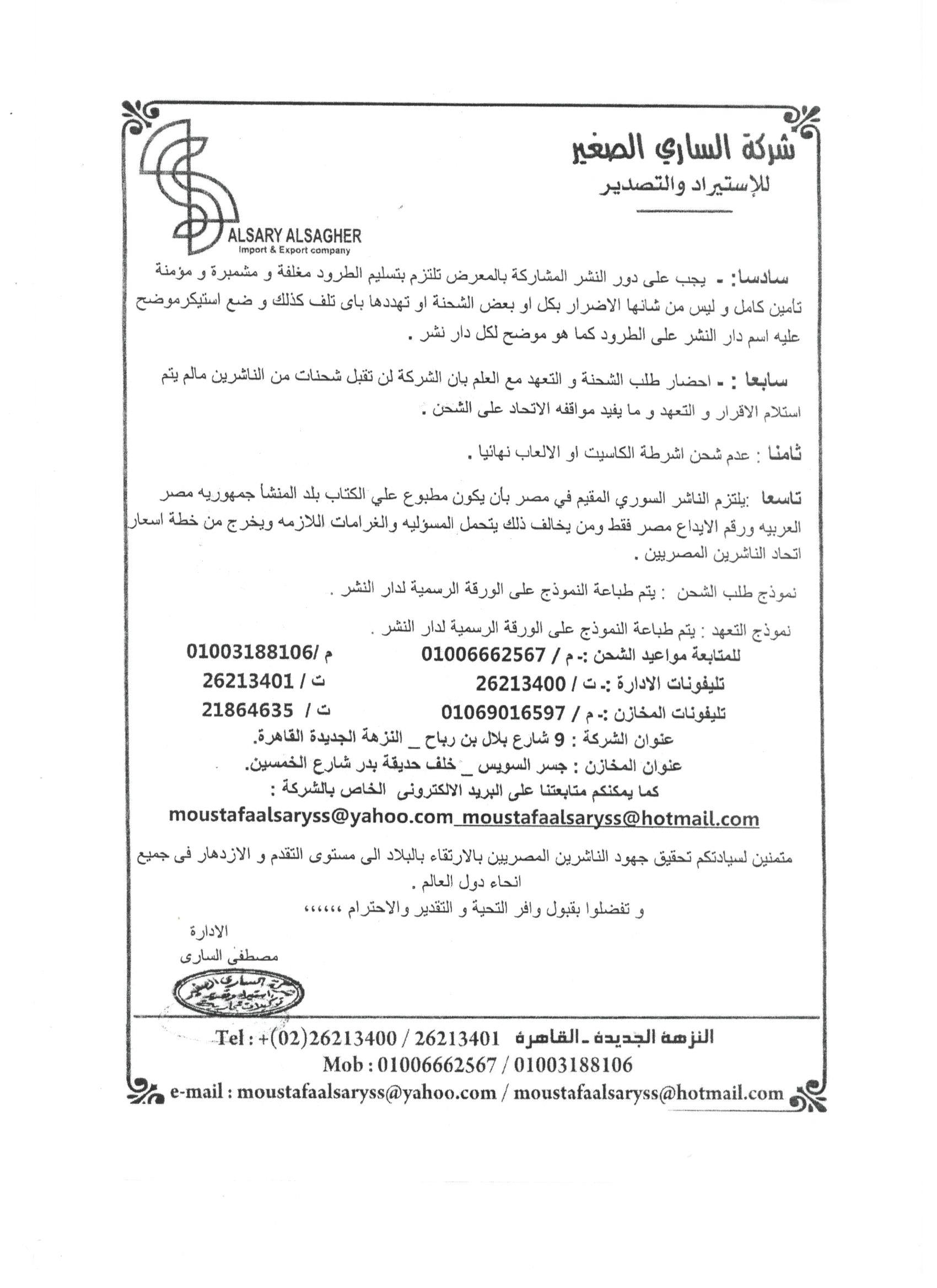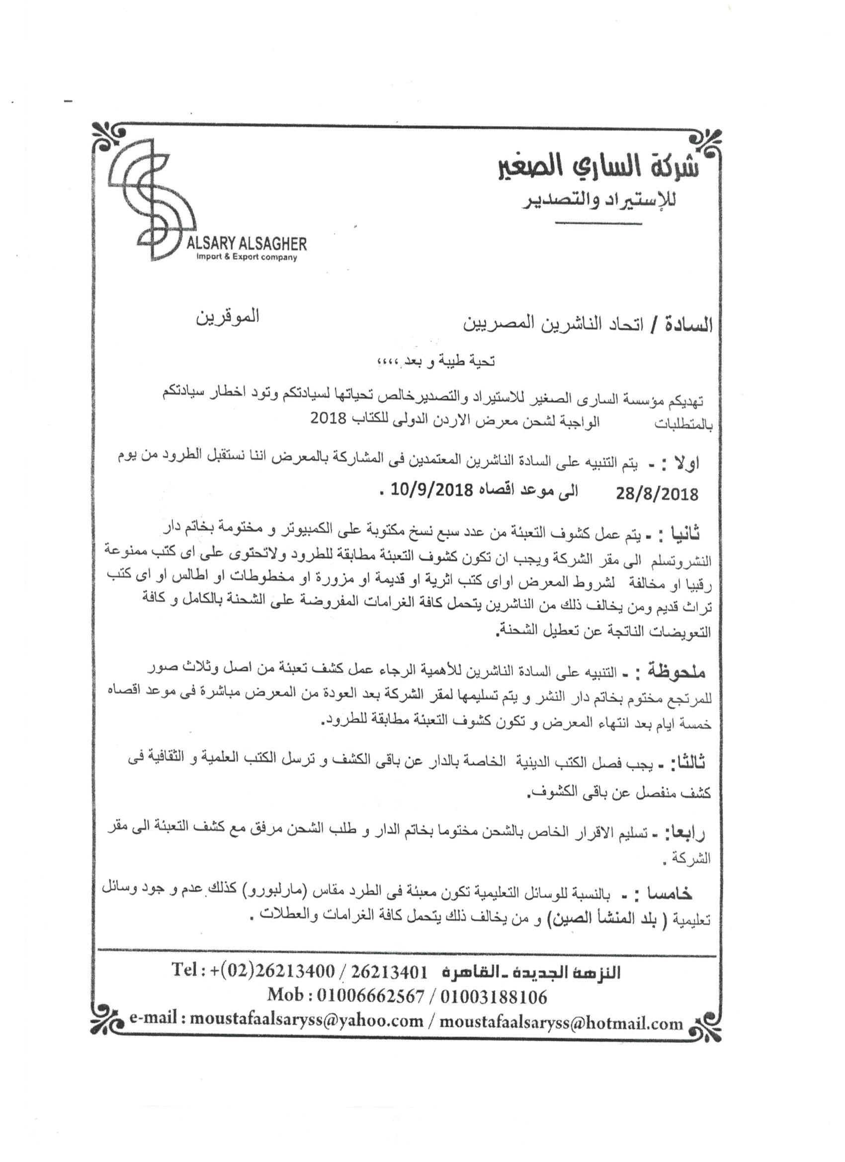 تعليمات شحن معرض الأردن الدولى للكتاب