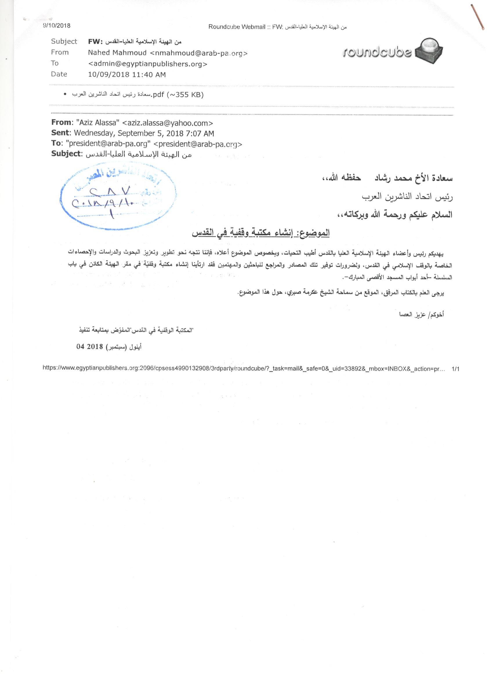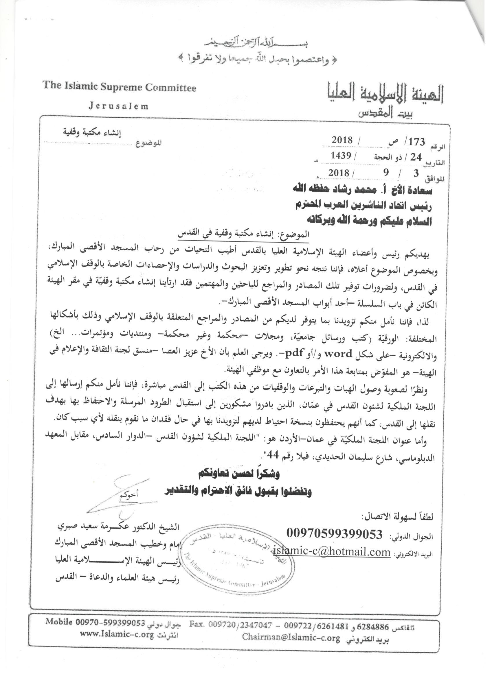 بخصوص إنشاء مكتبة وقفية فالقدس