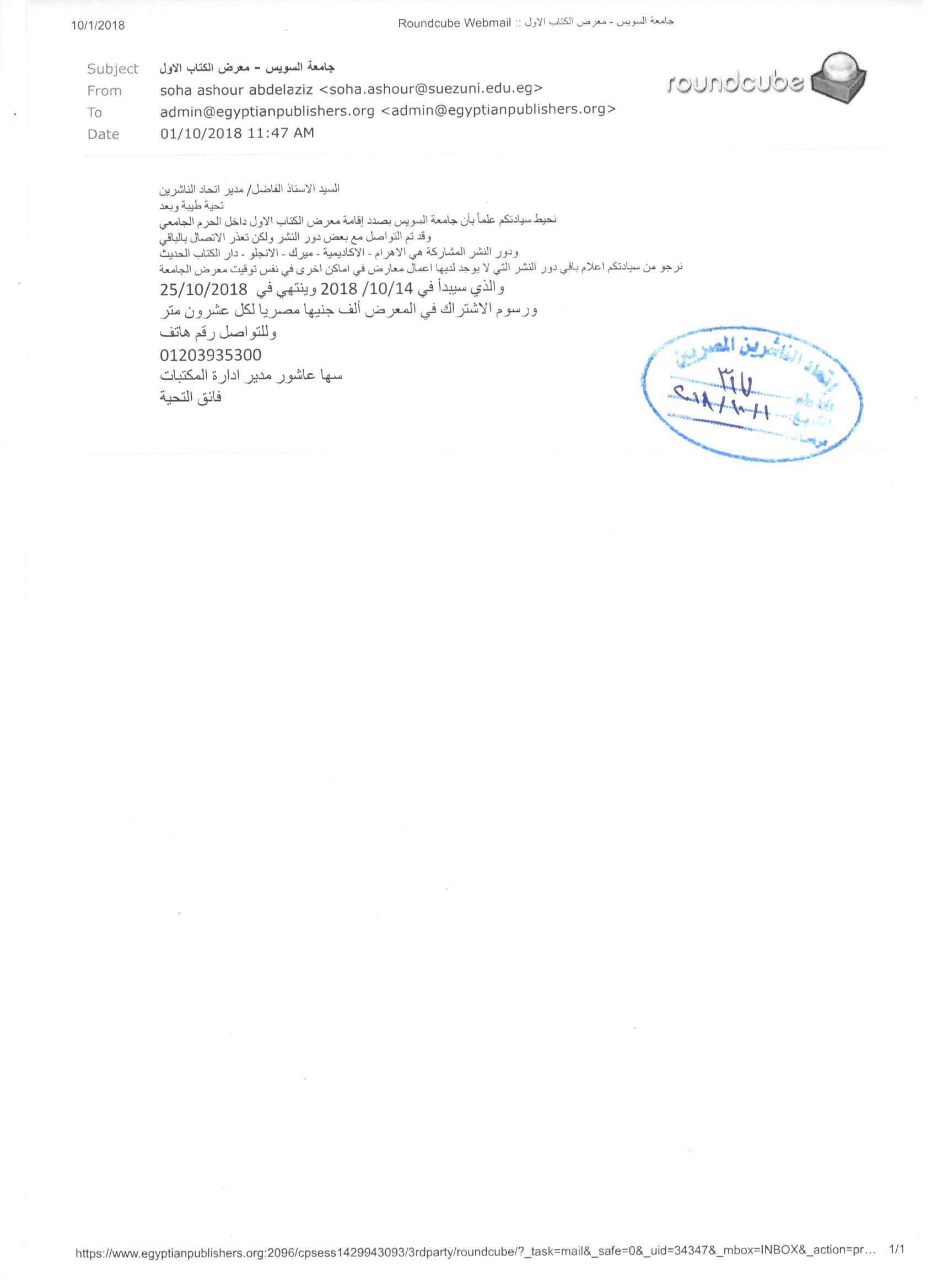 بخصوص إقامة معرض للكتاب بجامعة السويس