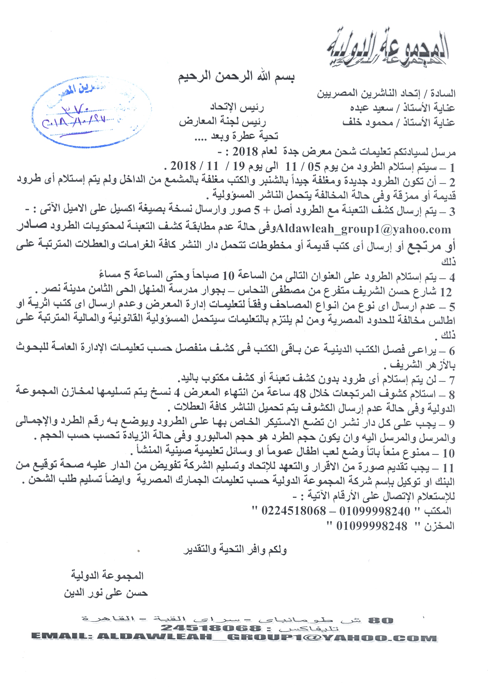 بخصوص تعليمات شحن معرض جدة الدولى للكتاب وفقاً لآخر تعديل